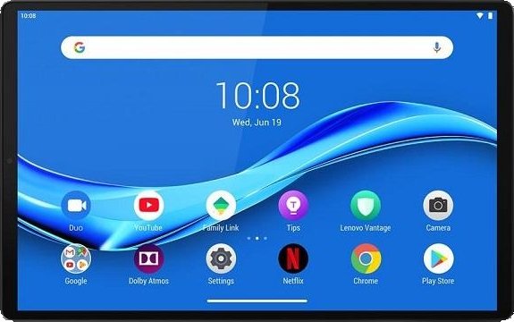 tablet s Wi-Fi • 10,3“ IPS displej • rozlišení 1920×1200 px • 8jádrový procesor 2,3 GHz • 4 GB RAM • interní paměť 64 GB • microSD až do 256 GB • zadní fotoaparát 8 Mpx • přední fotoaparát 5 Mpx • odemykání pomocí obličeje • Bluetooth 5.0 • GPS • USB-C • baterie 5 000 mAh • operační systém Android 9.0 Pie